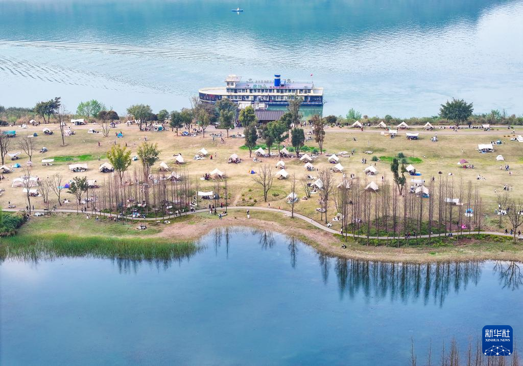 3月16日,游客在重庆广阳岛游览、休闲(无人机照片)。新华社记者 王全超 摄