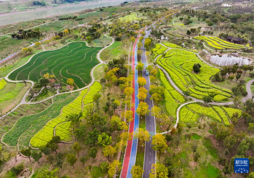春日时节,重庆广阳岛春意盎然,一片生机勃勃的景象。