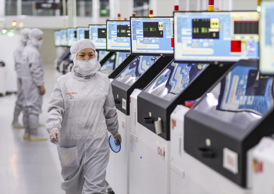 2024年3月14日,在位于重庆市璧山区的重庆康佳光电科技有限公司,工作人员在商显MLED生产线上作业。新华社发(曾清龙 摄)