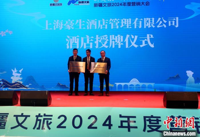 18日,新疆文旅2024年度营销大会在五家渠市举行,酒店授牌仪式。史博 摄