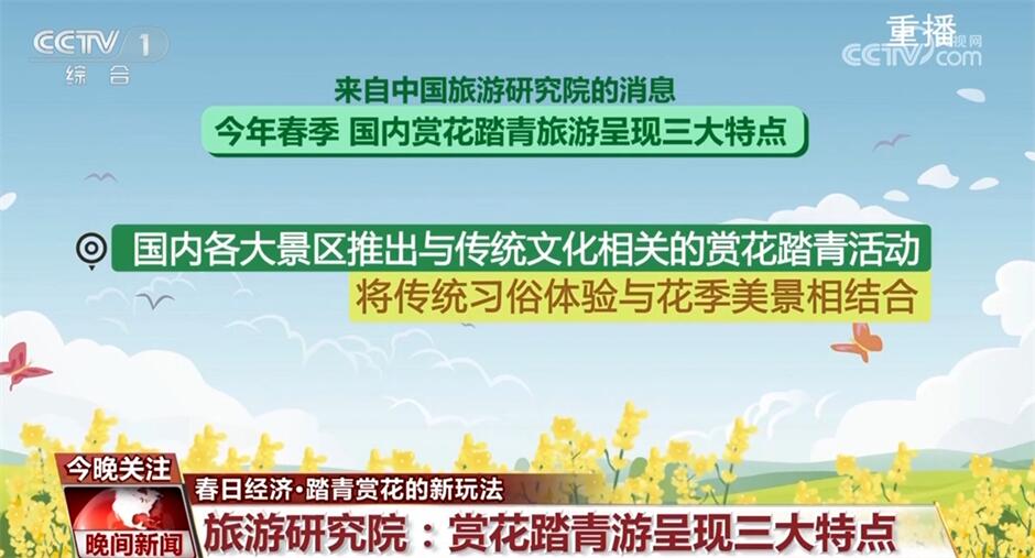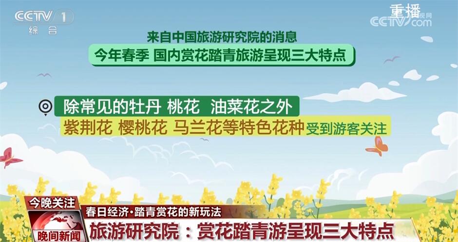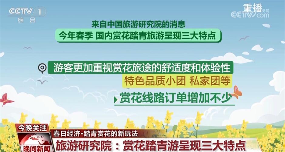 来自中国旅游研究院的消息,今年春季,国内赏花踏青旅游呈现三大特点:首先,除了常见的牡丹、桃花、油菜花之外,紫荆花、樱桃花、马兰花等特色花种也受到游客关注;其次,国内各大景区推出与传统文化相关的赏花踏青活动,将传统习俗体验与花季美景相结合;此外,游客也更加重视赏花旅途的舒适度和体验性,特色品质小团、私家团等赏花线路订单增加不少。