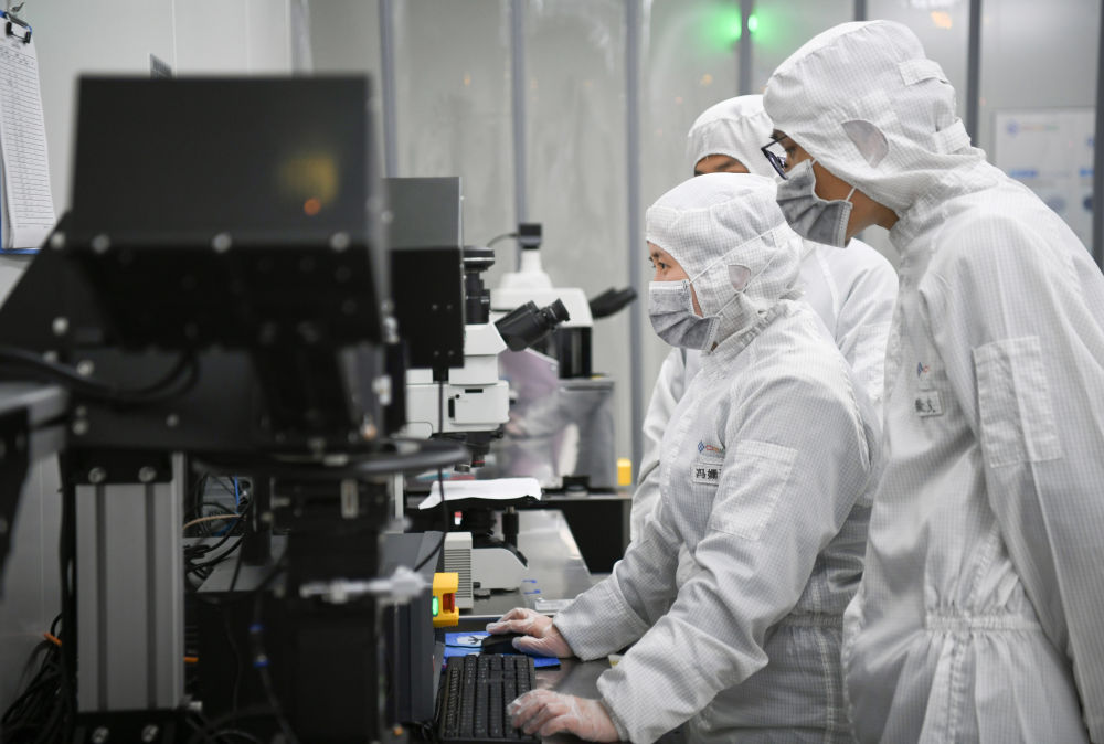2024年3月4日,技术人员在陕西光电子先导院科技有限公司测试晶圆。新华社记者 张博文 摄