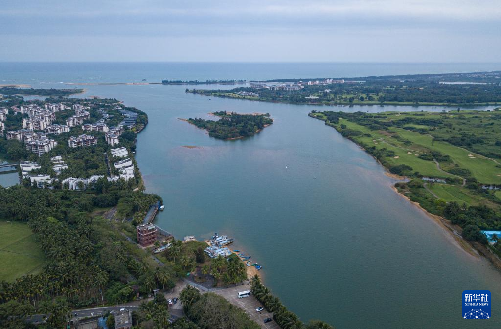 这是在海南环岛旅游公路沿线拍摄的万泉河入海口景色(3月13日摄,无人机照片)。新华社记者 蒲晓旭 摄