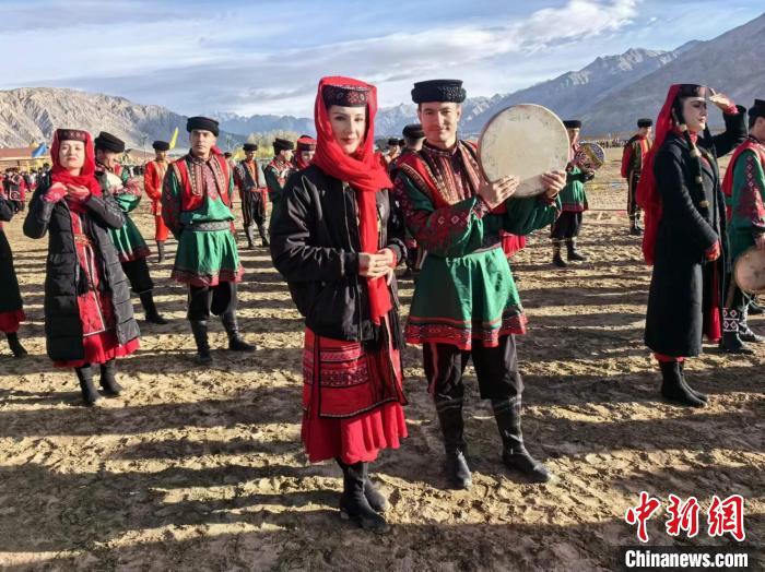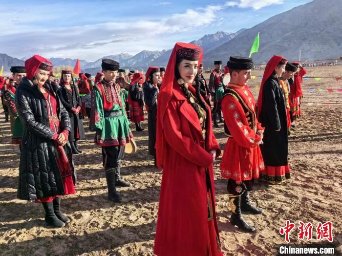 3月21日,新疆塔县举行非物质文化遗产及传统体育展示展演活动。图为当地塔吉克族服饰展演方阵。马晓东 摄