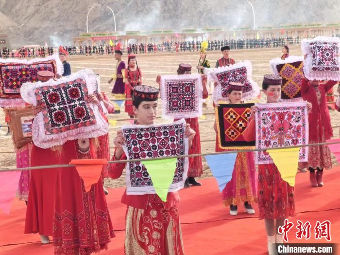 3月21日,新疆塔县举行非物质文化遗产及传统体育展示展演活动。图为自治区级非物质文化遗产,塔吉克族刺绣展示。马晓东 摄