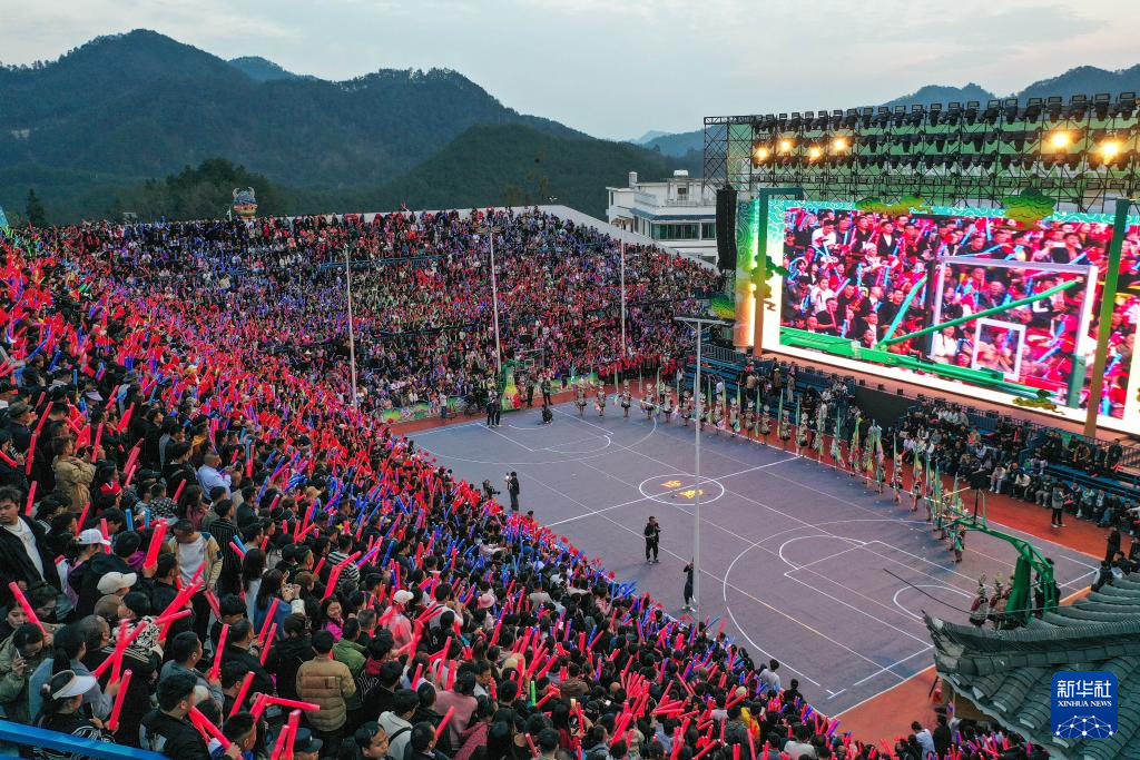 这是3月22日拍摄的2024年乡村篮球球王争霸赛开幕式现场(无人机照片)。