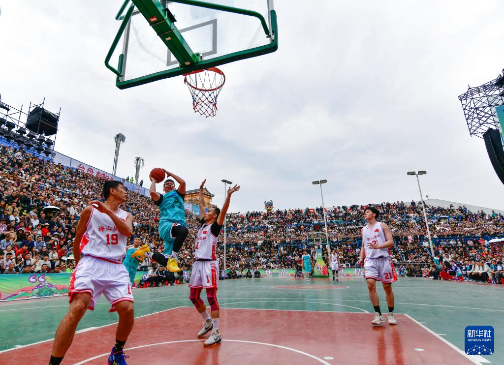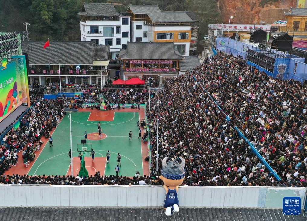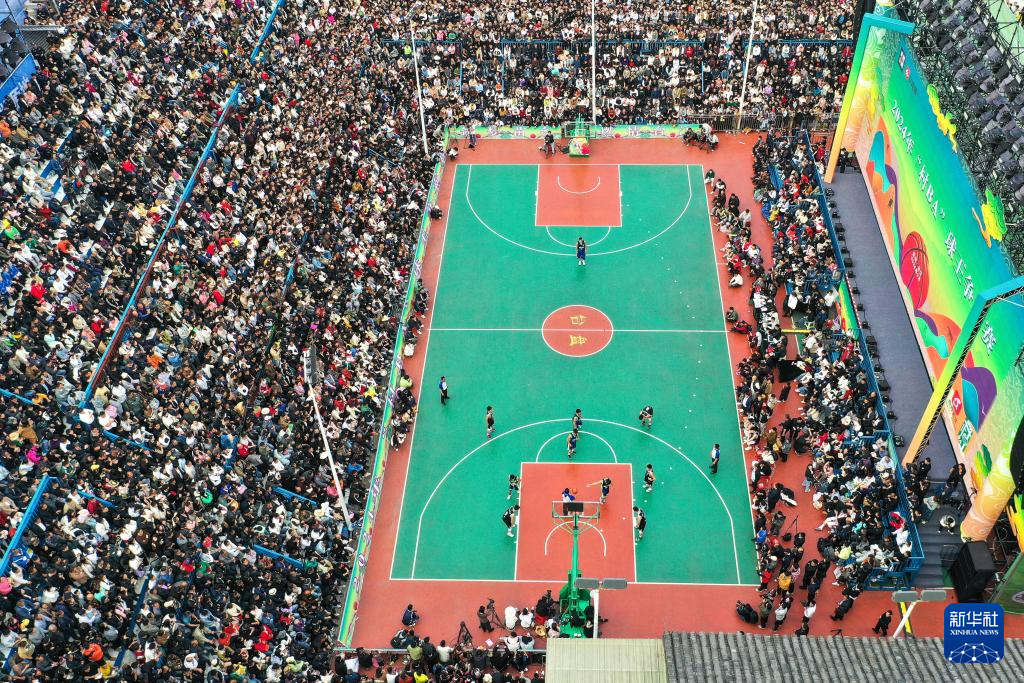 这是3月22日拍摄的2024年乡村篮球球王争霸赛现场(无人机照片)。