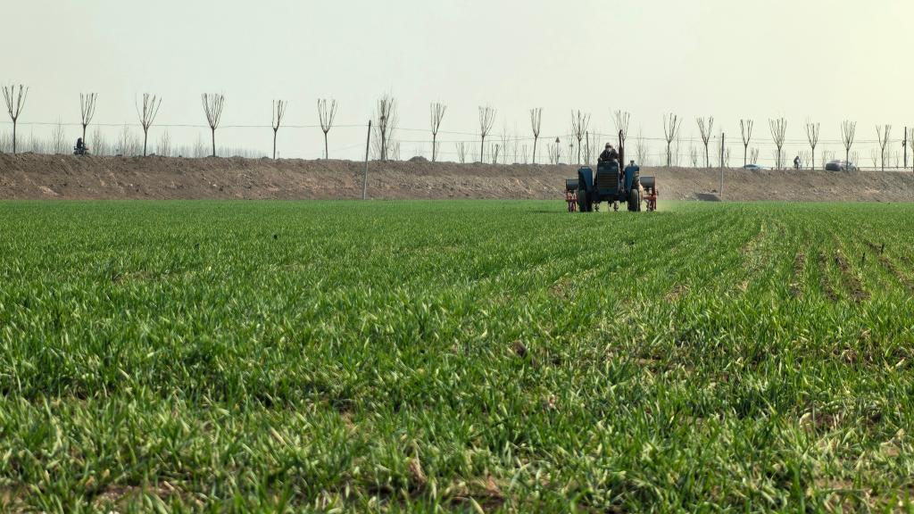 在山东,早已破土而出的麦苗已陆续返青起身,人们紧抓田间管理,促进小麦更好地生长。