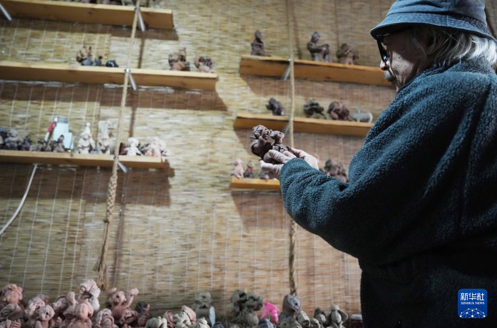 3月22日,王辰在工作室整理泥人作品。新华社记者 李钢 摄