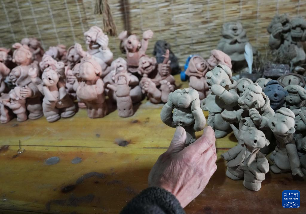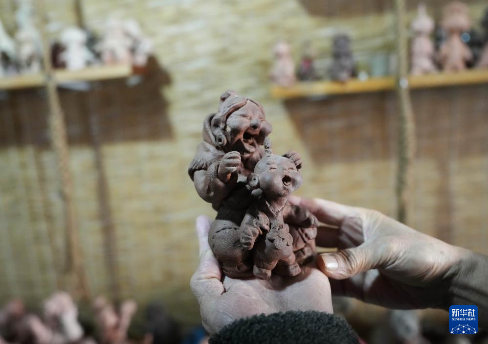 这是3月21日在王辰工作室拍摄的泥人作品。新华社记者 李钢 摄