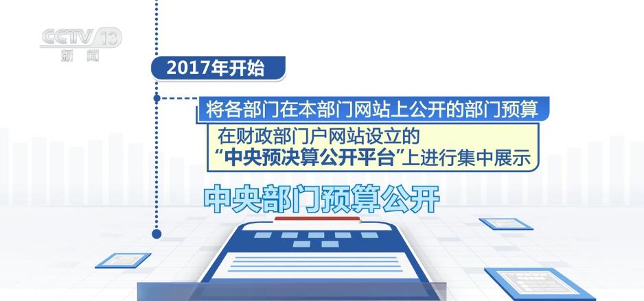 关于中央部门预算公开,最早在2008年,选择科技部等11个部门进行部门预算内部公开试点。2010年,财政部印发指导意见,当年有78个中央部门公开部门预算。2011年,公开部门预算的中央部门增加到96个,并首次公开中央部门“三公”经费预算。2013年,中央部门预算首次做到各部门集中在1天内公开。从2017年开始,将各部门在本部门网站上公开的部门预算,在财政部门户网站设立的“中央预决算公开平台”上进行集中展示。