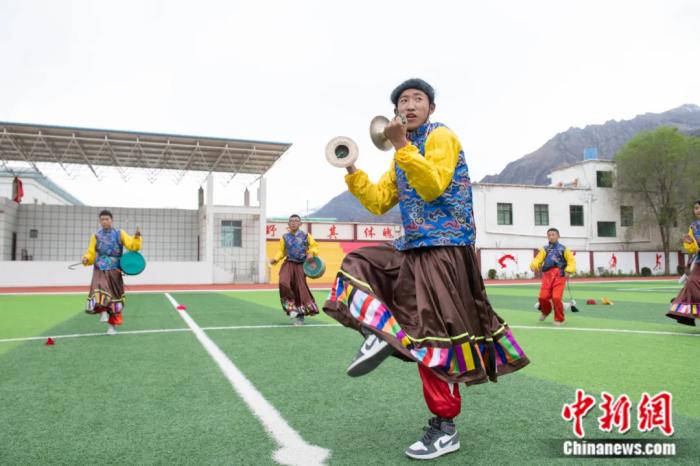 西藏加查县中学学生在练习非遗昌果卓舞。贡嘎来松 摄