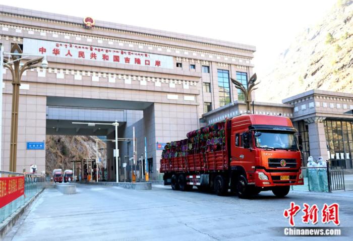货车驶入位于西藏自治区吉隆县的吉隆口岸。吉隆融媒体中心 供图