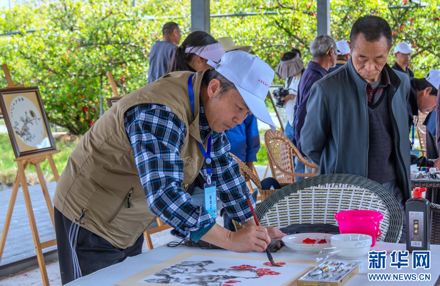 书画爱好者现场创作(摄于3月26日)。新华网发(杨灿华 摄)