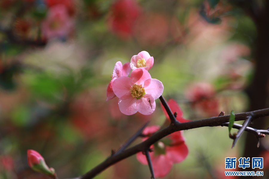 茈碧湖畔,一树树木瓜花娇艳似火(摄于3月26日)。新华网发(罗新才 摄)