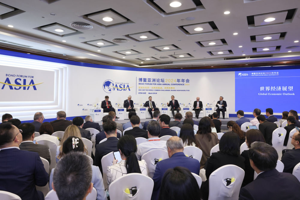 这是博鳌亚洲论坛2024年年会“世界经济展望”分论坛现场(2024年3月27日摄)。新华社记者 唐如峰 摄