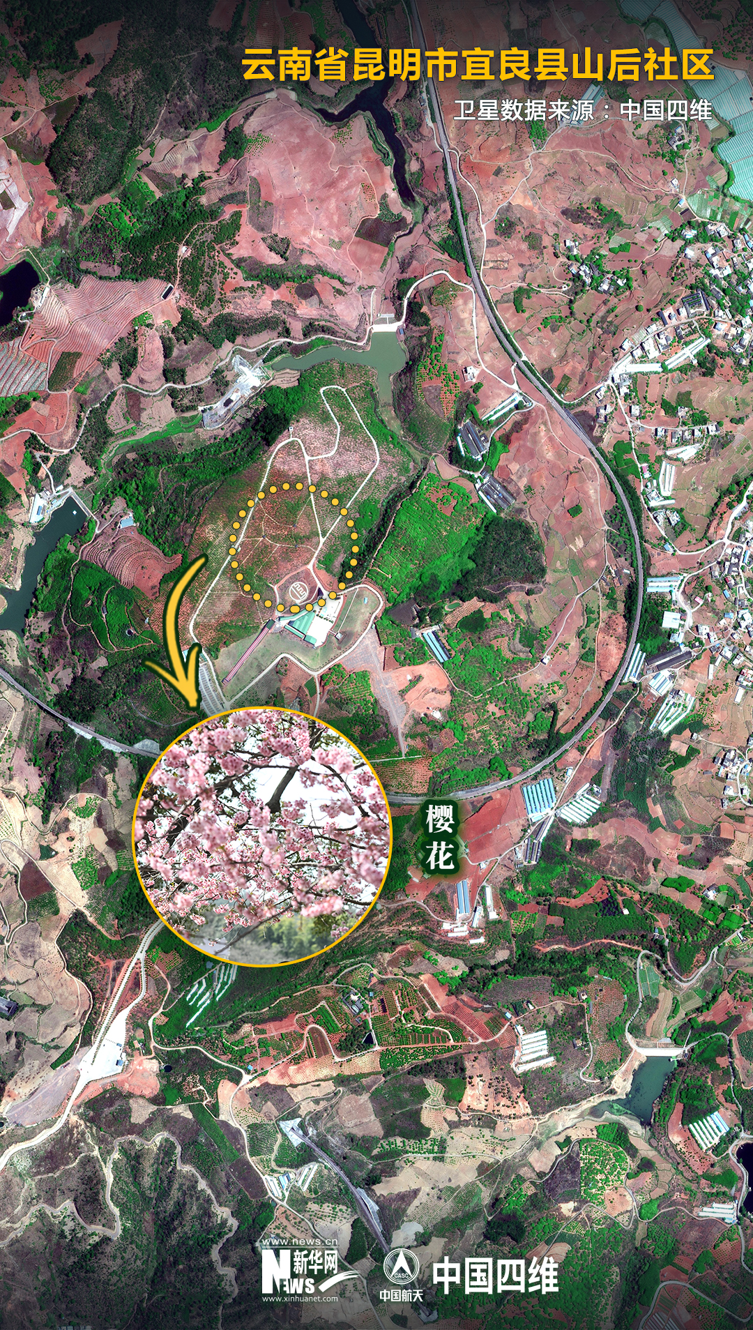 2023年3月1日拍摄的宜良县山后樱花谷一景(无人机照片)。新华社记者 陈欣波 摄
