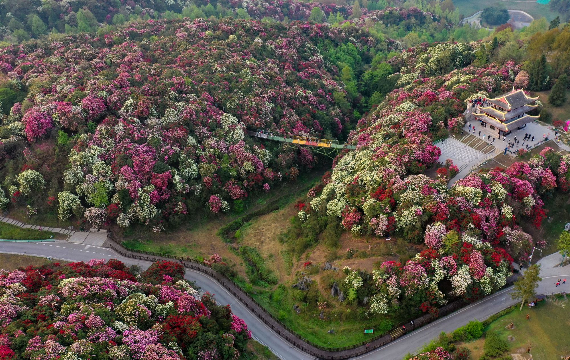 绵延百里的杜鹃花尽情绽放。新华社记者 陶亮 摄