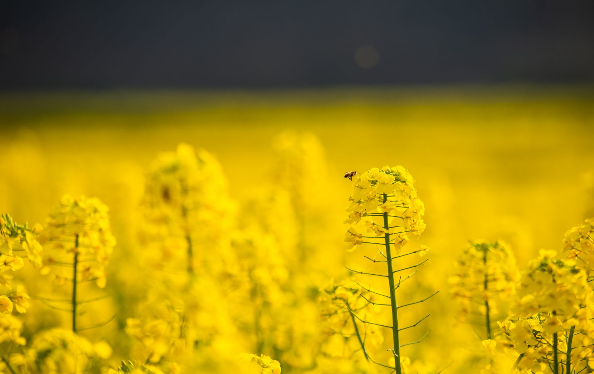 一只蜜蜂在盛开的油菜花旁飞舞(3月2日摄)。新华社记者 王冠森 摄