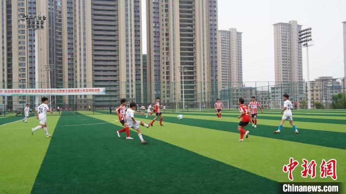 图为30日,第三届赣港青少年足球联谊赛在江西定南县举行。定南县委宣传部供图