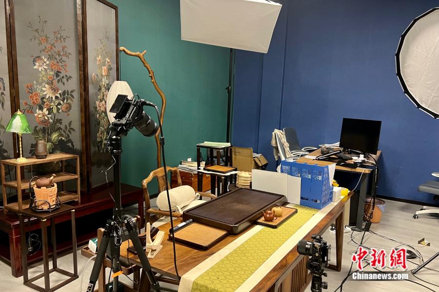 双江冰岛茶荟运营中心的直播间。中新网 张钰惠 摄