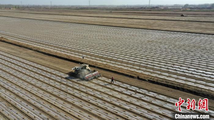 中新网乌鲁木齐4月1日电(柳玉柱)春日渐暖,新疆各地棉花春播拉开序幕。近日,新疆阿克苏地区沙雅县,170万亩棉花播种工作正逐步展开。与过去不同的是,如今棉农忙活的场景明显少了,取而代之的是大批“智慧农机”在地里作业,农业机械已经为棉花播种的“主力军”,棉农种田更有盼头。