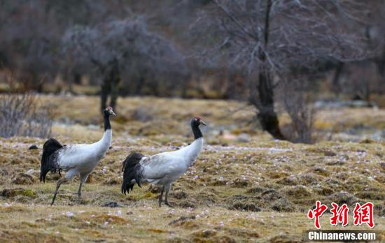 据悉,这是林芝市今年最后一批即将迁徙的黑颈鹤,它们预计将于4月底飞往青海等方向,完成从越冬地到繁殖地的迁徙。图为西藏林芝拍摄到的黑颈鹤。益西旦增 摄