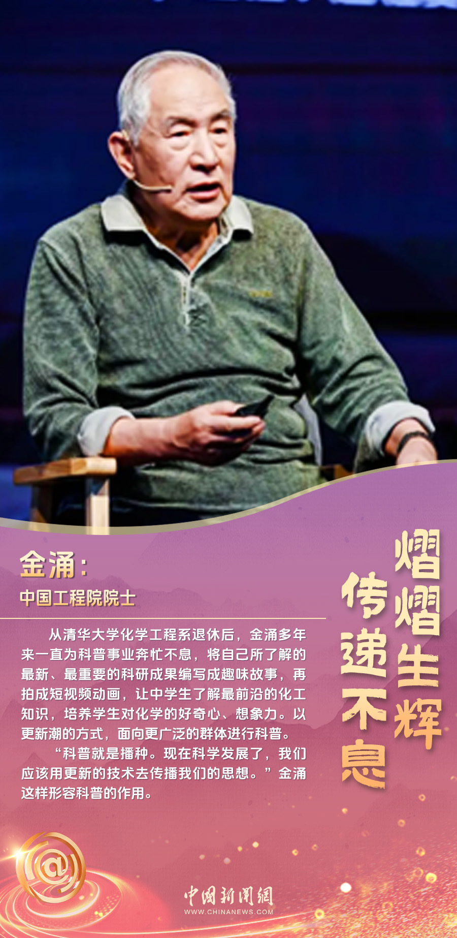 他,用一年时间,冒着严寒、顶着酷暑,与居民们深入沟通,解决好社区的“充电难”问题;她 ,2019年在大学校园中挺身而出,保护同学,2023年成为了一名人民警察;他,从清华大学化学工程系退休后,多年来一直为科普事业奔忙不息……
