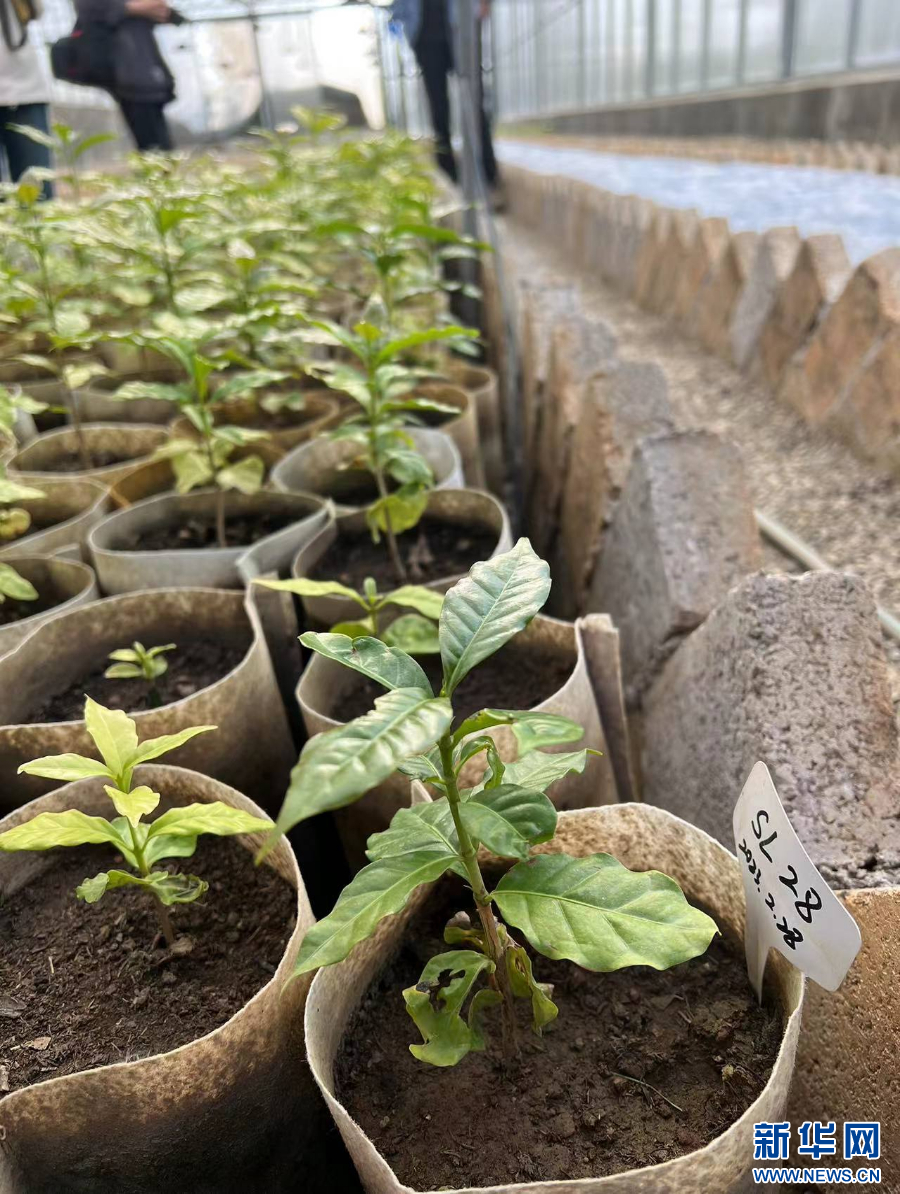 山顶一号咖啡庄园自行培育的咖啡苗(4月2日摄)。新华网 杨桢宇 摄