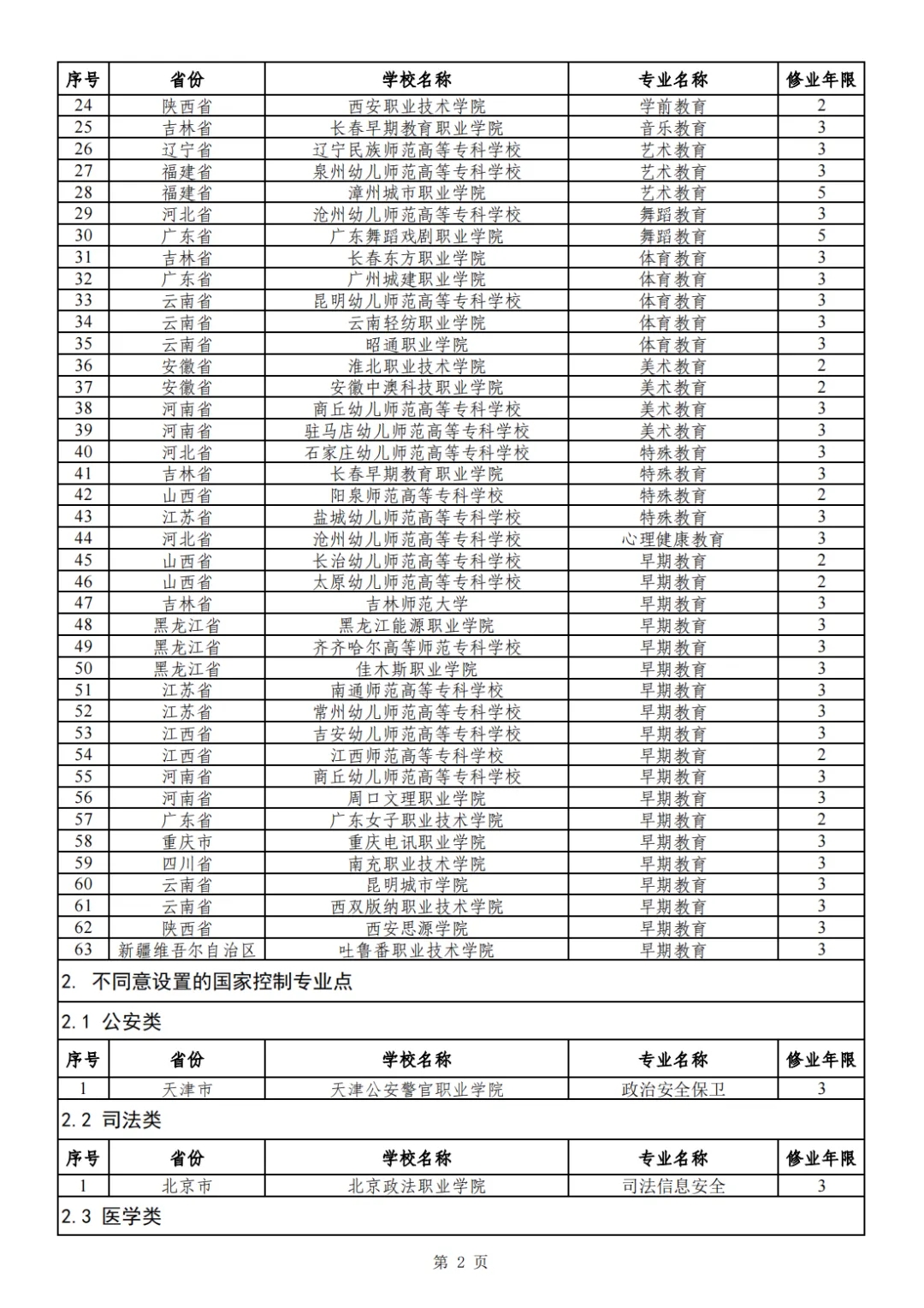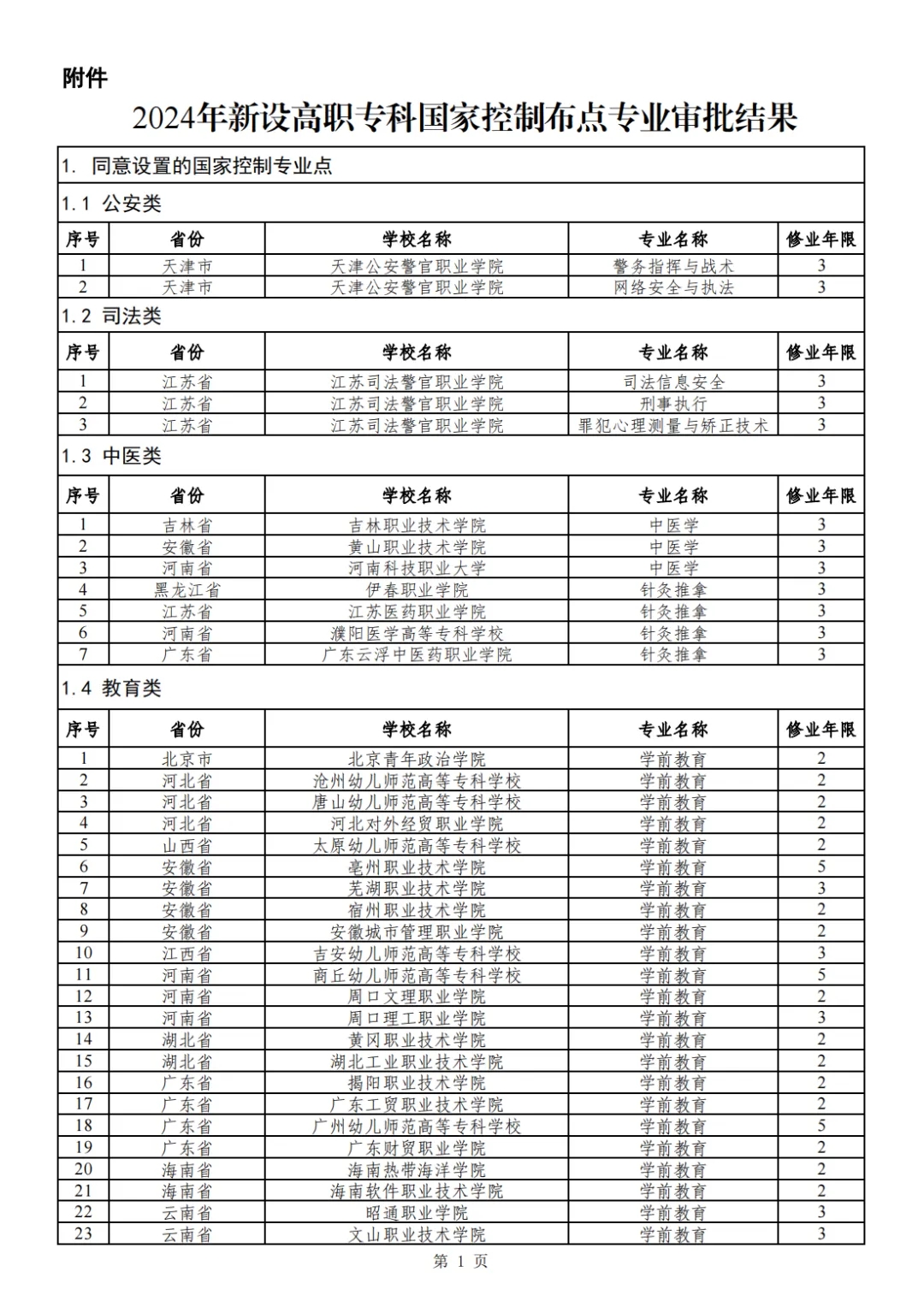 教育部共受理2024年拟新设国家控制布点专业申请178个,经会同公安部、司法部、国家卫生健康委、国家中医药管理局等行业主管部门审核,同意设置专业点75个,不同意设置专业点103个,审批结果可在教育部政务服务管理平台查询。审批同意设置的国家控制布点专业将导入全国职业院校专业设置管理与公共信息服务平台,自2024年起可以招生。平台网址:http://gz.moe.gov.cn