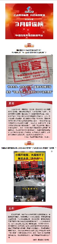 来源标题: 打击网络谣言 共建清朗家园 中国互联网联合辟谣平台2024年3月辟谣榜