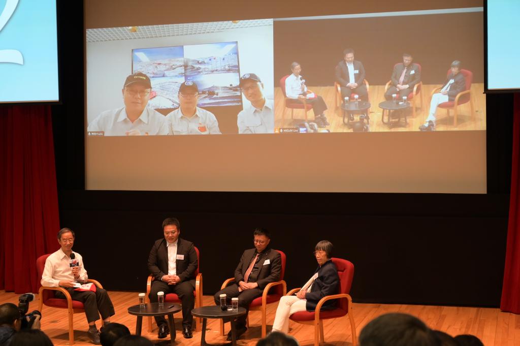 4月10日,香港会场与南极中山站进行线上“极地对话”。新华社记者 谭佳铭 摄