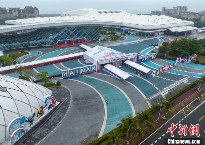 4月10日,航拍第四届中国国际消费品博览会主会场海南国际会展中心。中新社记者 骆云飞 摄