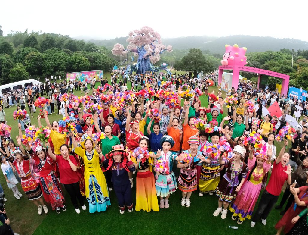 4月11日,演出人员在广西南宁市青秀山主会场庆祝佳节。新华社记者 周华 摄