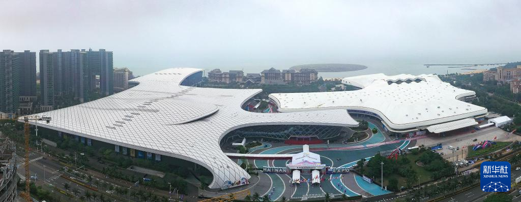 这是4月11日拍摄的第四届中国国际消费品博览会主会场海南国际会展中心(无人机拼版照片)。新华社记者 郭程 摄