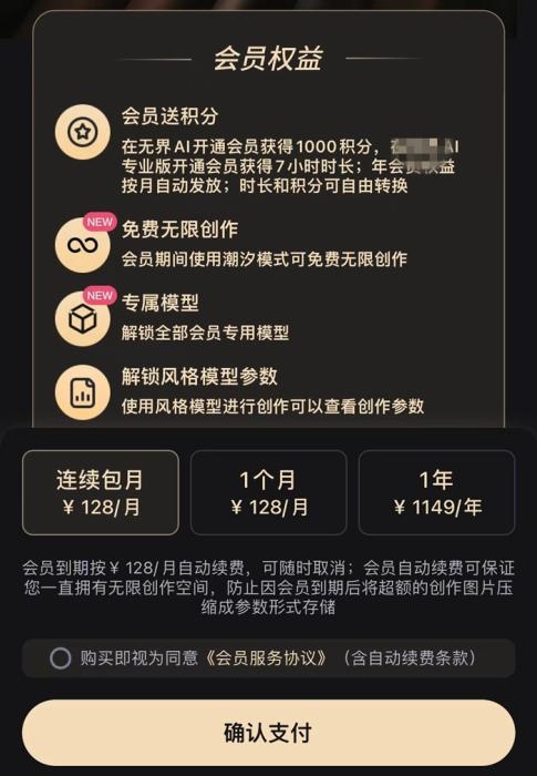 “原来我经常使用的一个文生图APP很多模型收费了,你猜多少?会员每月128元,一年1149元。”有用户对中新财经表示。