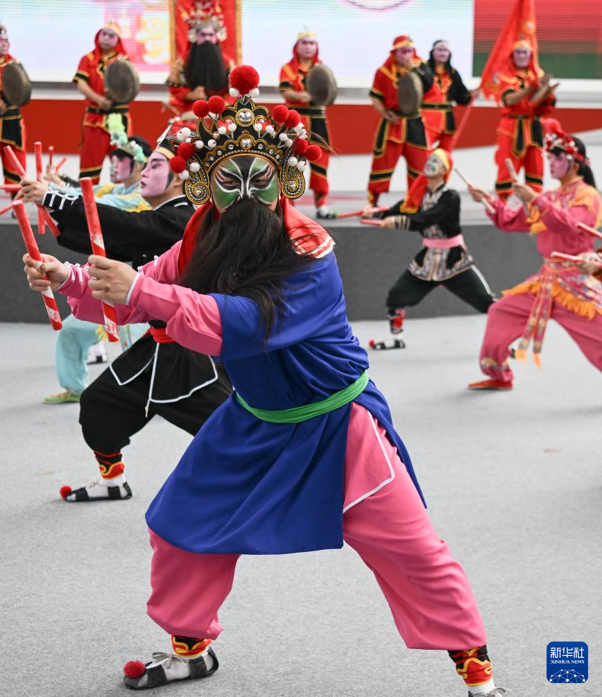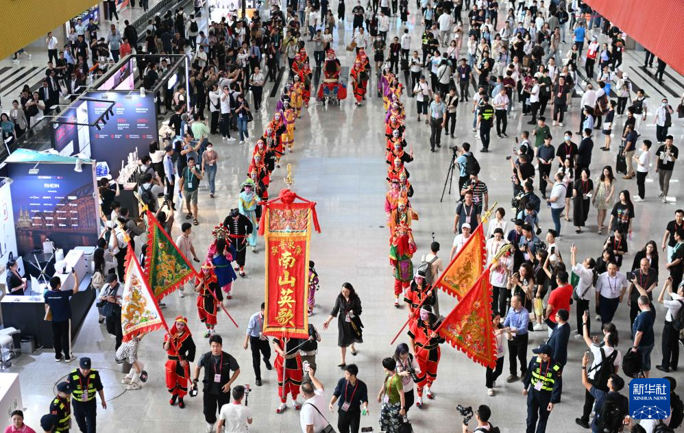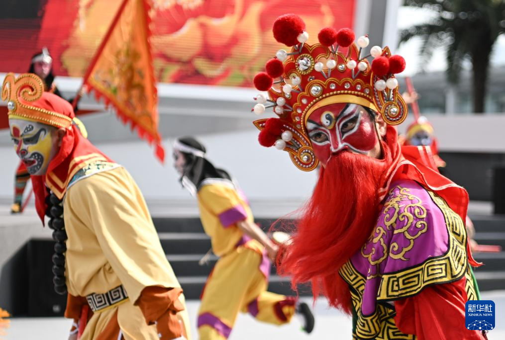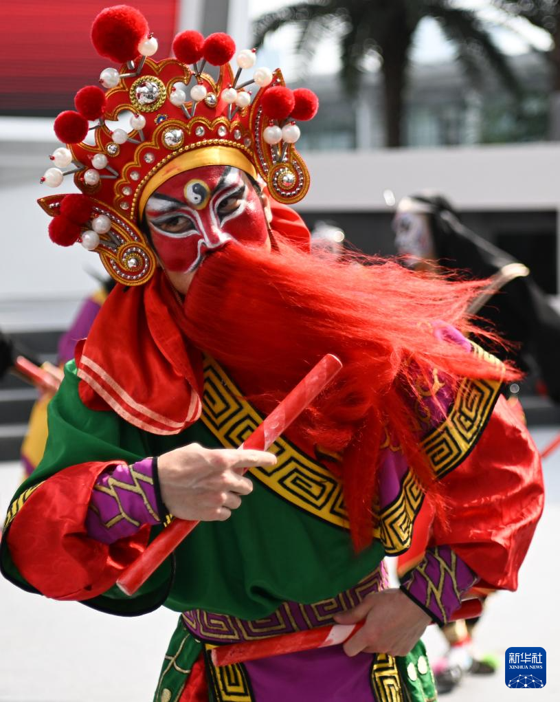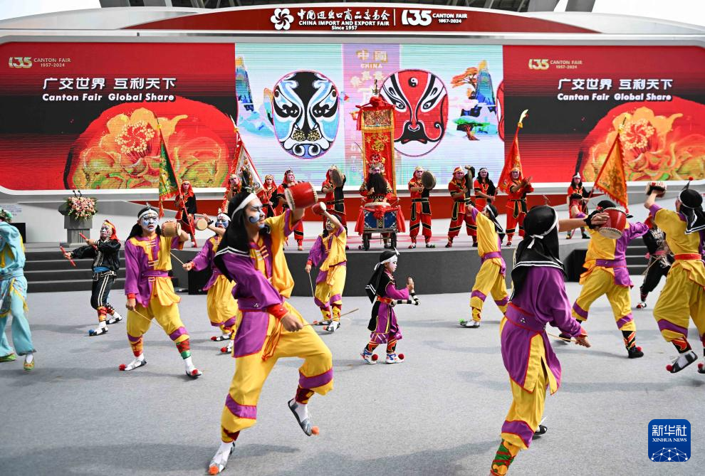 当日,第135届中国进出口商品交易会开幕。来自广东普宁的南山英歌队进行的英歌舞展演吸引各国采购商、参展商驻足观看。