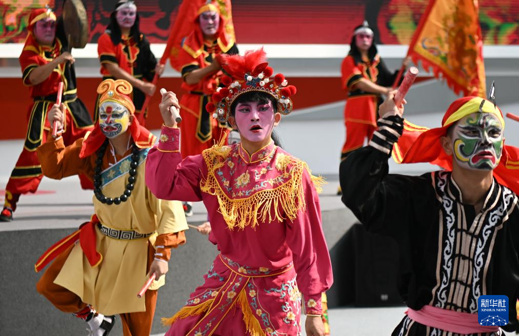 4月15日,来自广东普宁的南山英歌队在第135届广交会上进行英歌舞展演。新华社记者 邓华 摄