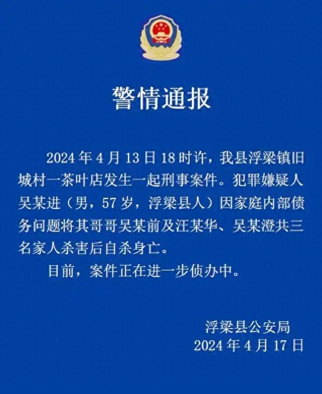 来源标题:警方通报“茶企老板一家3人遇害”:嫌犯系其弟弟