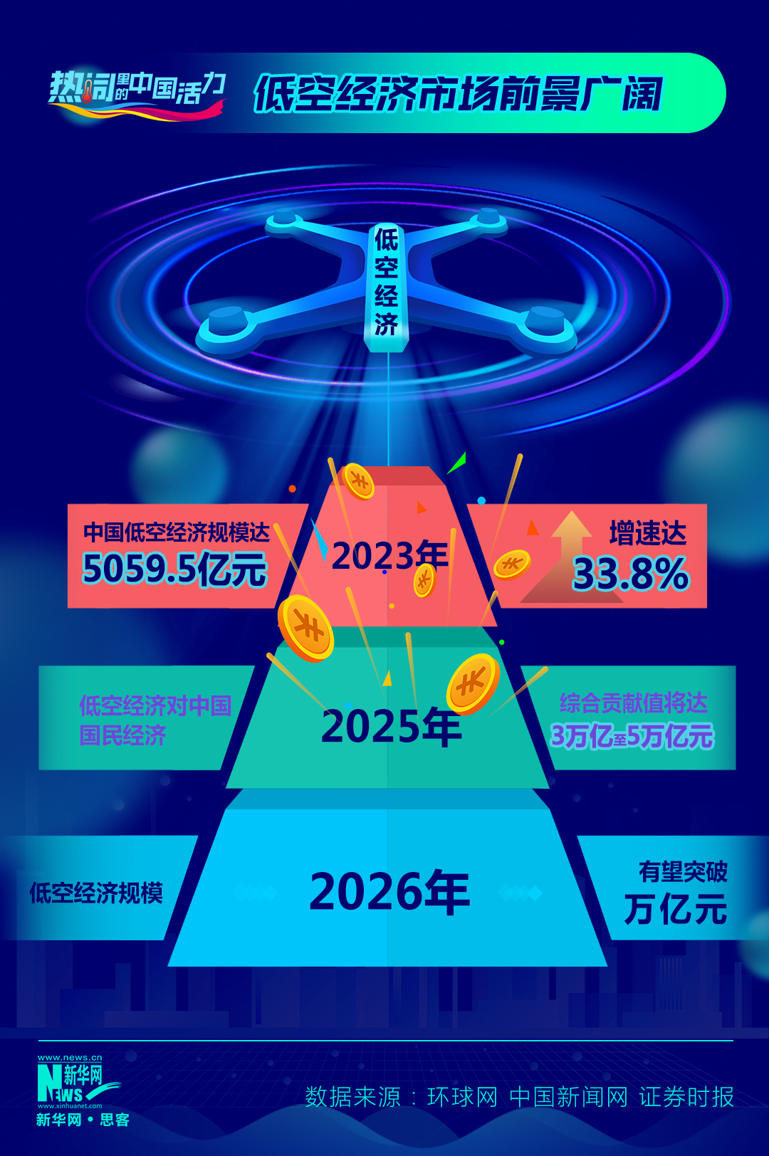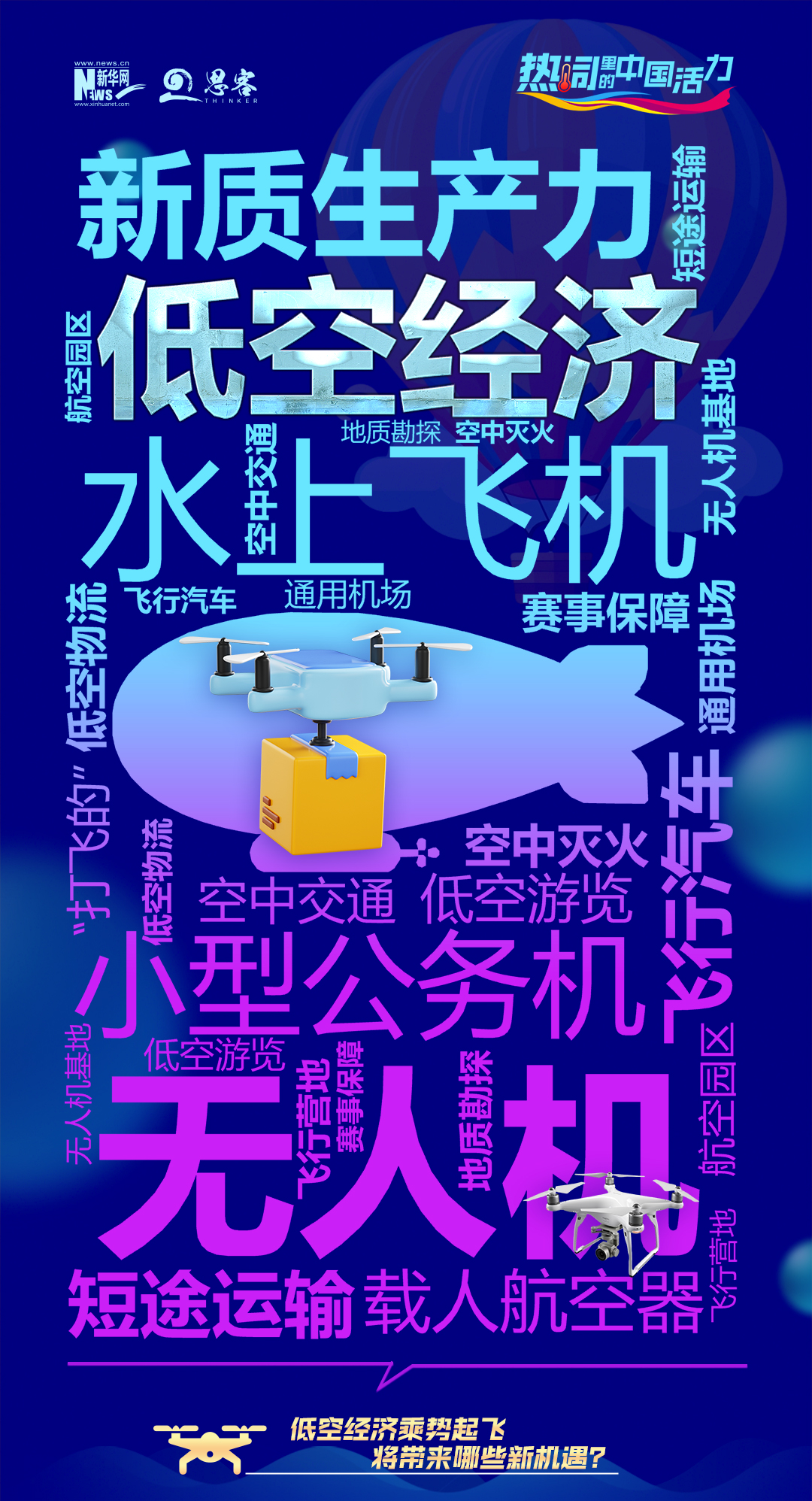 2023年底,中央经济工作会议将低空经济列为战略性新兴产业之一。2024年3月,国务院正式将“积极打造生物制造、商业航天、低空经济等新增长引擎”写入政府工作报告。作为新质生产力的代表,低空经济已经成为培育发展新动能的重要方向。