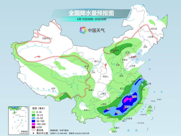 今明天(4月19日至20日)南方强降雨、强对流天气持续,江苏、安徽、湖南、江西、广西、广东等地部分地区有暴雨或大暴雨,明天强降雨还将会集中在广西、广东、江西等地。与此同时,冷空气也在影响中东部,今天华北、黄淮等地降温明显,局地降温幅度将超10℃。之后在冷空气和降雨的叠加影响下,南方气温也将有所下降。