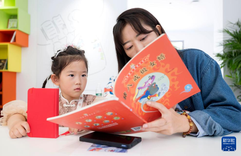 4月20日,在北京的国际书店(花园桥店)内的“美猴王奇趣屋”,一对母女阅读图书。新华社记者 才扬 摄