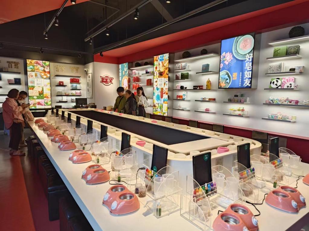 4月21日,游客在唐闸历史文化街区体验手工制皂。新华社记者 柯高阳 摄