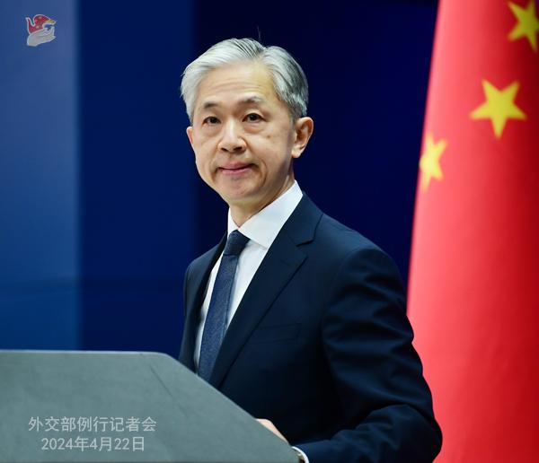 中国外交部发言人汪文斌4月22日主持例行记者会。