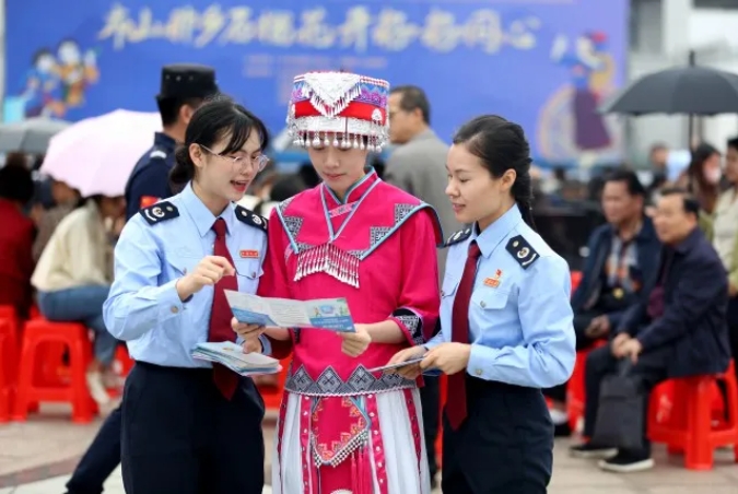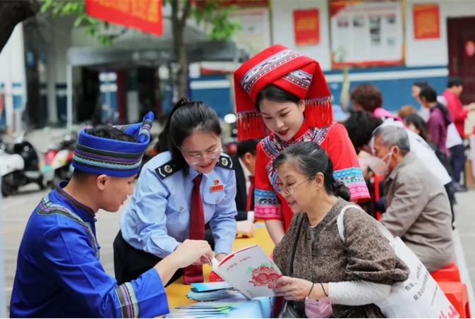 在税收宣传中,防城港市防城区税务局紧贴壮、瑶、苗、京等少数民族特点,组建“红石榴”党员先锋队,提供“汉+壮”“汉+瑶”等双语交流服务,用懂乡音、接地气的宣传方式,将税法知识与税费政策送到群众的心坎上。