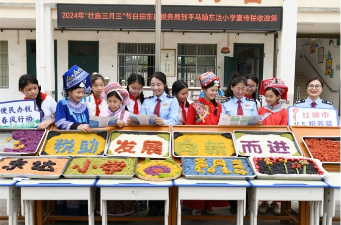 作为广西壮族自治区一年一度的传统节日,“三月三”承载了丰富的民族文化内涵,也展现了广西壮族及其他各民族对美好生活的向往和追求。在全国第33个税收宣传月中,广西税务局铸牢中华民族共同体意识,创新载体,把税收宣传与“三月三”民族传统节庆结合起来,助力推动“五个家园”建设,打造税收宣传月“三月三”精品,积极唱响“税助发展 向新而进”的税宣“好声音”。