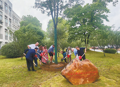 中美民间友好人士在浙江省衢州市江山中学共植友谊树。人民日报记者 白紫微摄