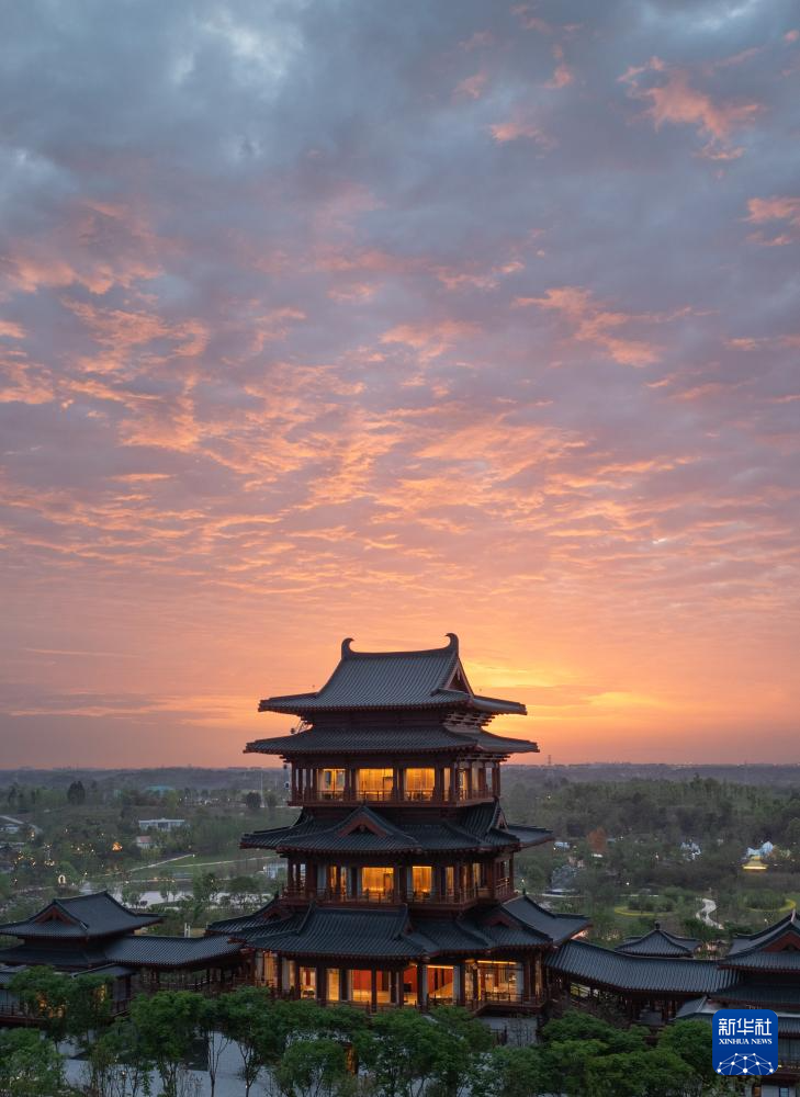 这是4月23日拍摄的成都世园会主会场锦云楼(无人机照片)。新华社记者 江宏景 摄