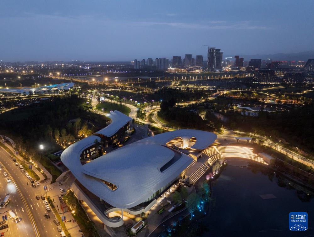 这是4月22日拍摄的成都世园会主会场锦云楼(无人机照片)。新华社记者 江宏景 摄