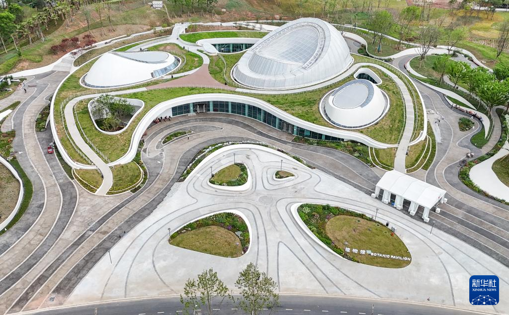 这是4月22日拍摄的成都世园会主会场植物馆(无人机照片)。新华社记者 王曦 摄